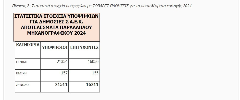 Αποτελέσματα υποψηφίων έτους 2024 στις δημόσιες ΣΑΕΚ (πρώην Ι.Ε.Κ.)